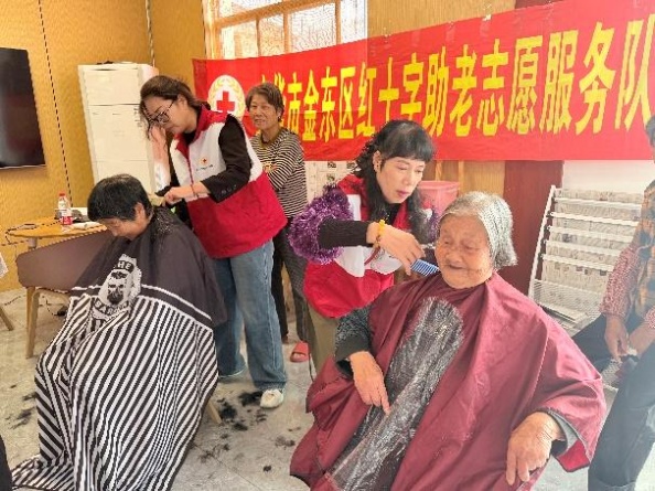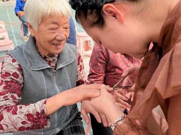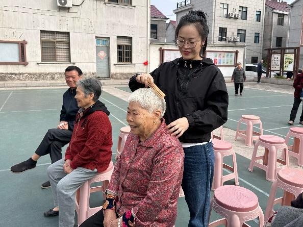 物資表心意,服務(wù)更暖心?;顒蝇F(xiàn)場專門設(shè)置了公益理發(fā)、健康義診、推拿服務(wù)等志愿項目,由醫(yī)生和志愿者們?yōu)槔先颂峁┵N心服務(wù),現(xiàn)場氣氛溫馨而有序。87歲的章秋玉老人家在推拿醫(yī)生按完肩頸后,紅了眼眶:“年年都想著我們,真是和家里人一樣親。”?